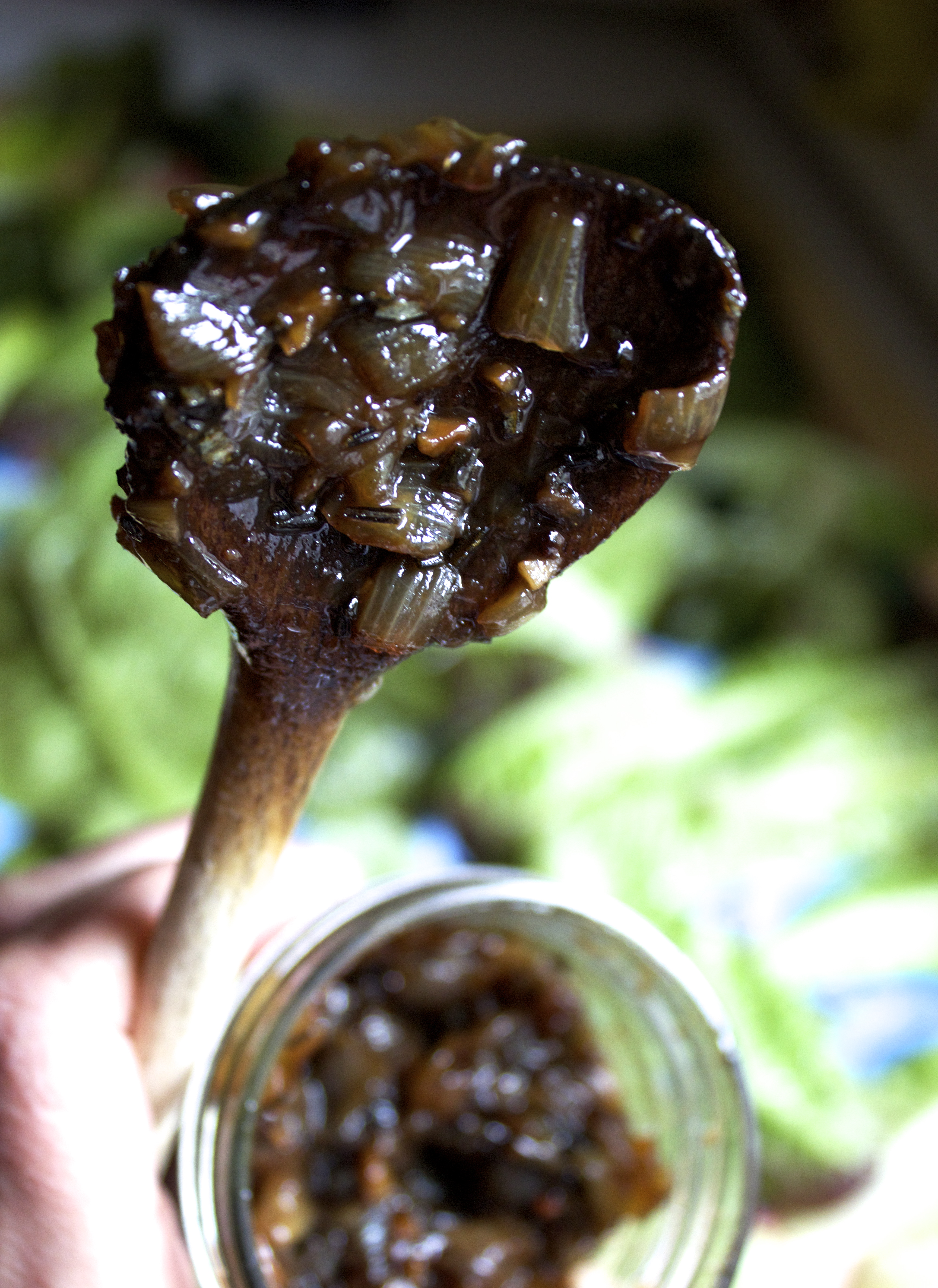 We cooked onions until translucent and added veggie stalk, the unsuccessful onion marmalade and seasonings. We left that sucker to reduce then topped a bowl with toasted bread heels and cheese, cheese, cheese. A quick broil and yummm!