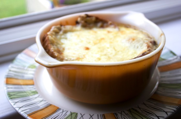 Our attempt at caramelizing onions was a taste success but consistency failure. The thing is, the results made an excellent base for french onion soup.